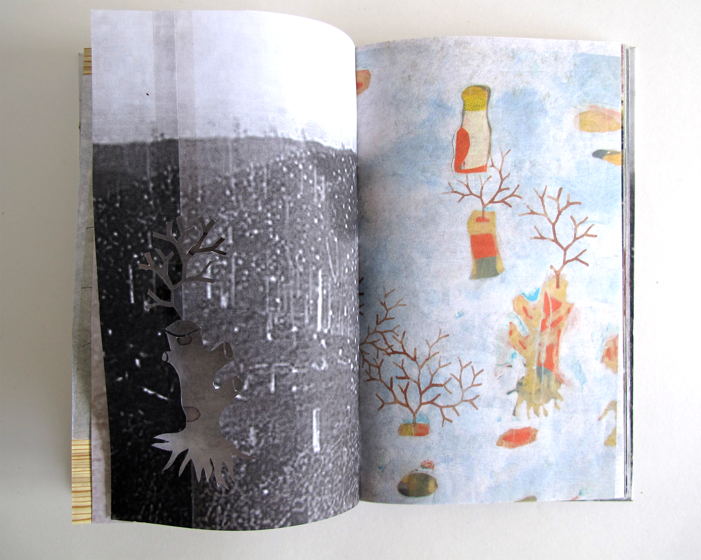 Often the books are one of a kind and their construction is approached as if I were making a painting, the narrative comes through the process of arranging and rearranging the pages, the book speaking its way into being.